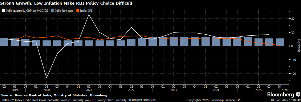 The RBI will announce its monetary policy decision tomorrow, and the steep slide in the rupee makes the call especially challenging. Although inflation is comfortably below target and some economists expect a 25-basis-point rate cut, the currency’s drop below 90, strong economic growth and persistent foreign outflows argue for caution. If RBI Cutes interest rates its generally bearish for Rupee. Traders will closely watch Governor Sanjay Malhotra’s comments on managing rupee volatility and attracting inflows, as expectations increasingly tilt toward a prolonged pause despite earlier indications of room to ease.