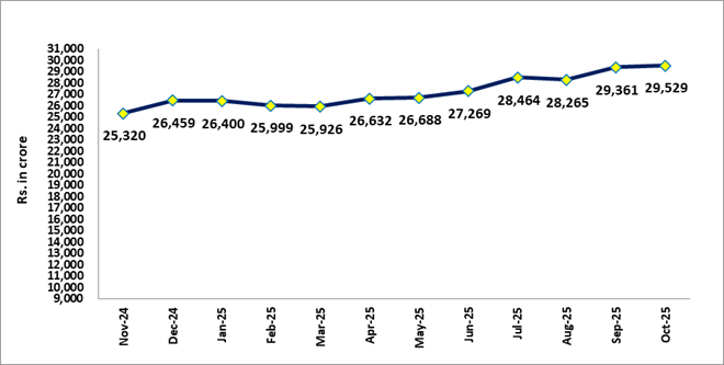 Systematic retail activity remained a key stabilising factor. Monthly SIP inflows increased from ₹28,265 crore in September to ₹29,529 crore in October, marking a ₹1,264 crore sequential increase and underscoring strengthening retail persistence.