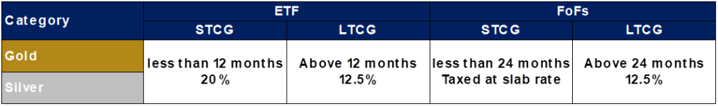 Tax rules have recently become simpler and more favourable. This change has improved the post-tax attractiveness of gold and silver ETFs and FoFs compared to earlier.