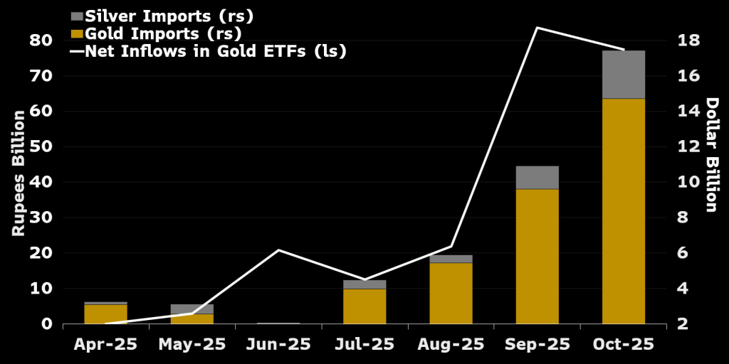 In July to September 2025, India’s current account deficit stood at US $12.3 billion, around 1.3 percent of GDP, with surging gold demand emerging as the biggest drag on the external balance. Gold imports have nearly tripled, hitting a record US $14.72 billion in October 2025 and adding renewed pressure on the trade deficit.
