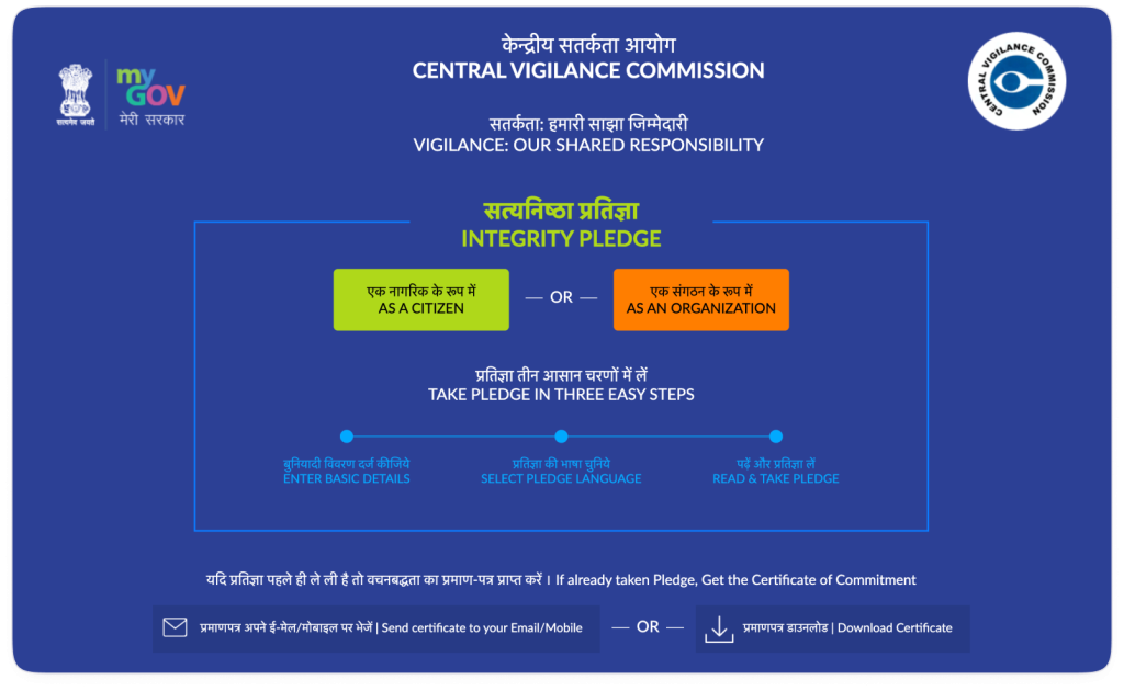 Join the movement towards a corruption-free nation by taking the Integrity Pledge on the official CVC portal: https://pledge.cvc.nic.in/